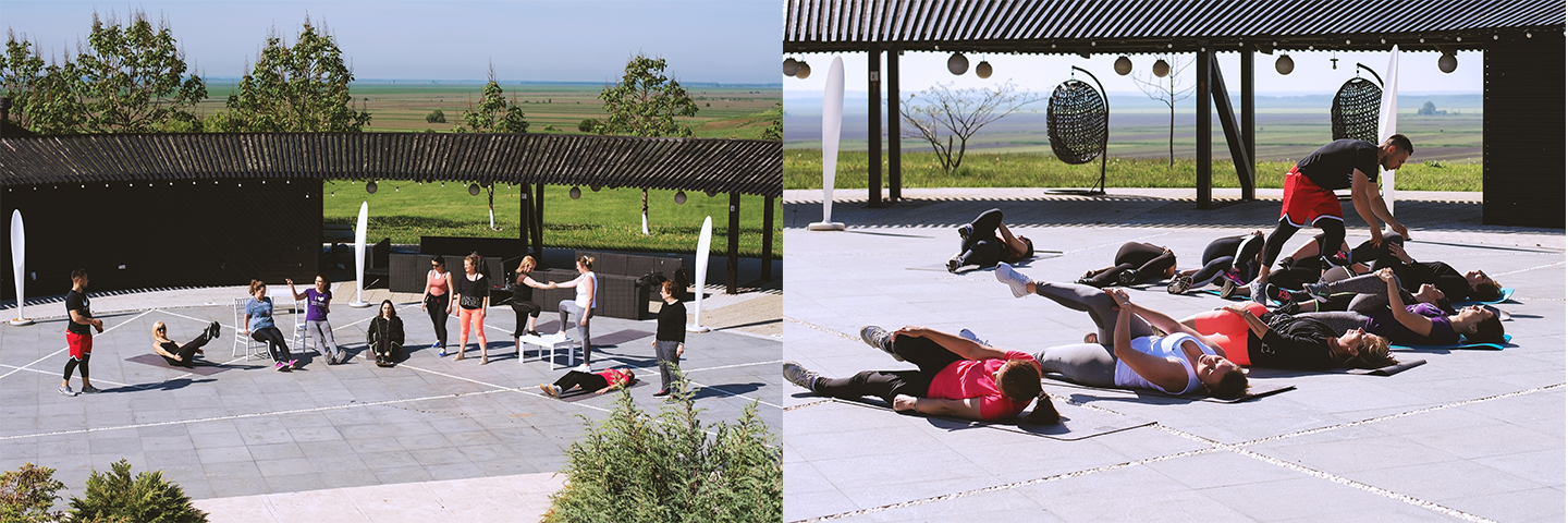 A doua zi a cantonamentului a început cu antrenamentul de aerobic pe marginea piscinei, în cadrul căruia antrenorul de la Bodyshape Transformation Center, Cornel Pantelin, multiplu medaliat la kaiac-canoe și premiat la Campionatele de Fitness și Culturism, le-a învățat pe invitate ce exerciții și mișcări pot face acasă pentru a completa seria de tratamente corporale în salon.